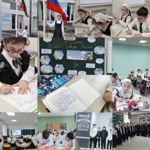 Утро в нашей школе традиционно началось с торжественной линейки: церемонии поднятия флага и исполнения гимна Российской Федерации и Чеченской Республики.
