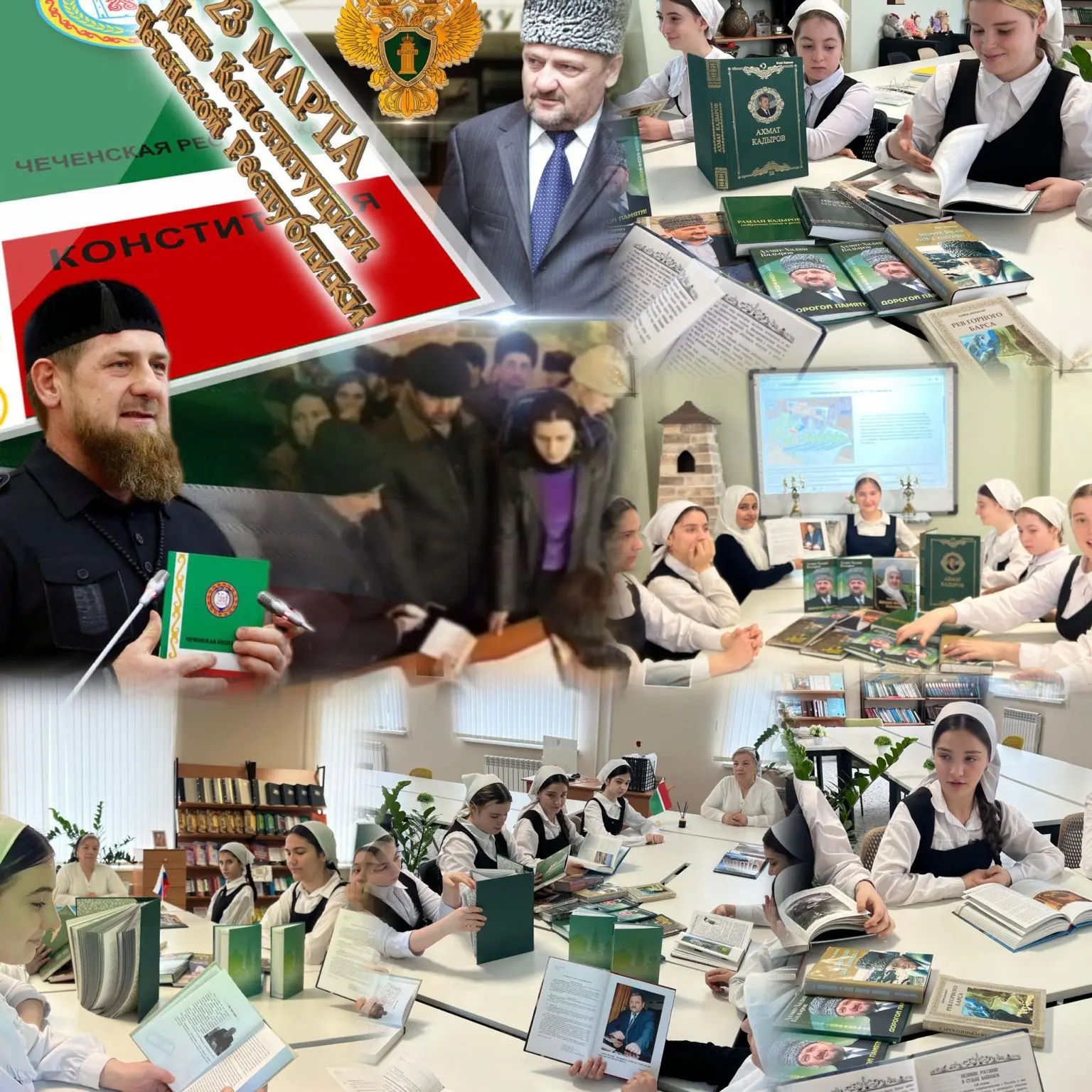 17.3.2026г. Сегодня школьники отметили День Конституции Чеченской Республики. В рамках празднования Дня Конституции Чеченской Республики в школе состоялась тематическая книжная выставка «Конституция — дань уважения Основному закону». Мероприятие организовали заведующая библиотекой Хатуева З.К. вместе с учениками 7-го «А» класса. Выставка была наполнена разнообразными изданиями Конституции, историческими документами, современными комментариями и материалами о правах и обязанностях жителей республики. Ребята активно участвовали в отборе книг, создании оформления выставки и подготовке докладов по основным положениям Конституции. Такое событие способствовало глубокому изучению правовых норм, осознанию важности следования законам и развитию гражданской ответственности среди молодого поколения.