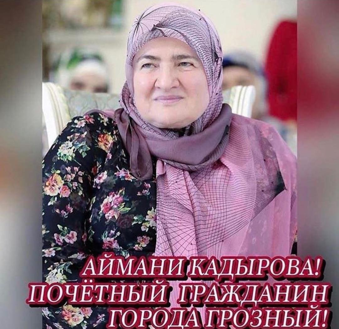 06.10.2019Ассаламу Iалайкум, дорогие друзья! Поздравляю ДОРОГУЮ МАМУ, Руководителя Регионального общественного фонда имени ПЕРВОГО ПРЕЗИДЕНТА ЧР, ГЕРОЯ РОССИИ АХМАТ-ХАДЖИ КАДЫРОВА (ДАЛА ГIАЗОТ КЪОБАЛ ДОЙЛА ЦУЬНАН) АЙМАНИ НЕСИЕВНУ КАДЫРОВУ с присвоением звания «Почетный гражданин города Грозного».Вы всегда делаете все возможное для помощи нуждающимся. Помогая жителям Грозного, Вы внесли большой вклад в саму столицу, в ее благосостояние и поэтому награда по праву принадлежит Вам!Пусть всегда у ВАС будут силы на совершение добрых дел, да воздаст ВАМ Всевышний АЛЛАХI за ваши поступки, за милость по отношению к угнетенным и малоимущим. Дала декъал йойла хьо, тха МЕХКАН НАНА АМАНУ! Дала тIаьхье беркате йойла хьан!АХМАТ-СИЛА! АЛЛАХIУ АКБАР!