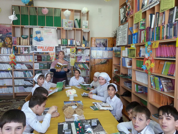 12.02.201612.02.2016 библиотекарь школы Хатуева З.К. в библиотеке организовала выставку исторической и художественной литературы, посвященной Героям Отечества. Также она провела беседу с читателями о жизни и деятельности Первого Президента Чеченской Республики Героя России А.А.Кадырова.