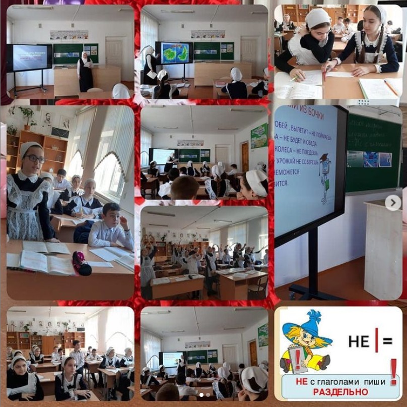 Открытый урок по русскому языку в 5 "Б" классе на тему "Не с глаголами". Провела урок учитель русского языка и литературы Джабраилова Л.М.