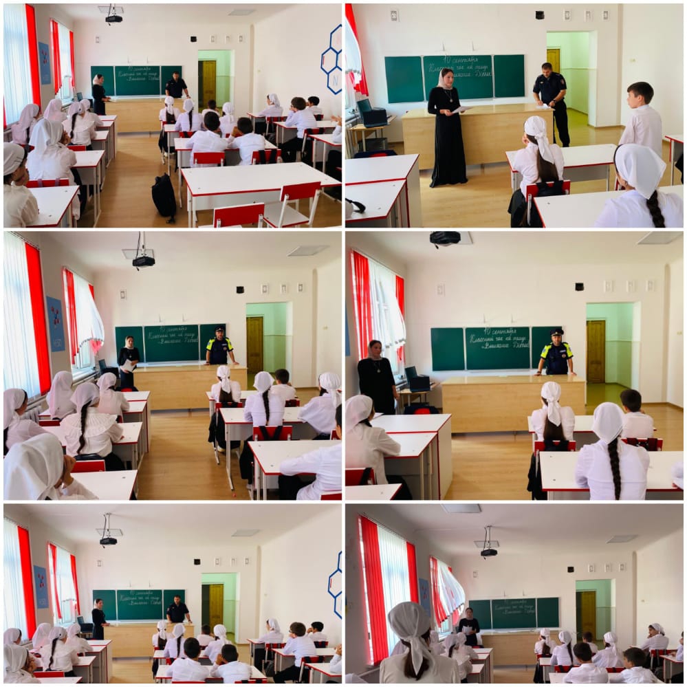 10.09.2022г. В рамках акции "Внимание, дети!", проходящей в период с 10 по 30 сентября 2022 г., в школе проведены классные часы, направленные на предупреждение дорожно-транспортного травматизма, пропаганду уважительного отношения к участникам дорожного движения и соблюдение правил дорожного движения. На мероприятиях участвовали инспектора ГИБДД Мантаев Хамзат, Шамилов Муса, а также заместитель директора по ОБЖ Солтаев Х.Г., педагог- организатор ДНВ и Р. Булуев И.И.