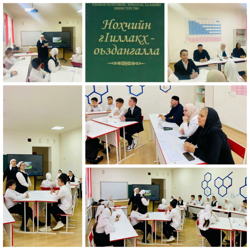 10.11.2022г. В рамках реализации Единой Концепции духовно-нравственного воспитания и развития подростающего поколения Чеченской Республики среди обучающихся 8-х классов проведена интеллектуальная игра «Семейные обычаи и традиции чеченского народа», на знание чеченских обычаев и традиций. Главная цель – воспитание подрастающего поколения на основе обычаев и традиций, к которым они принадлежат, привития детям основополагающих ценностей, отражающих менталитет их народа и популяризации традиционных духовных культурных ценностей.