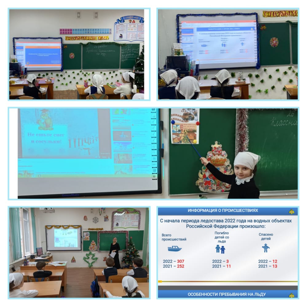 26.12.2022г. в 1-11 классах проведены классные часы, беседы на тему "Если ты оказался на льду".