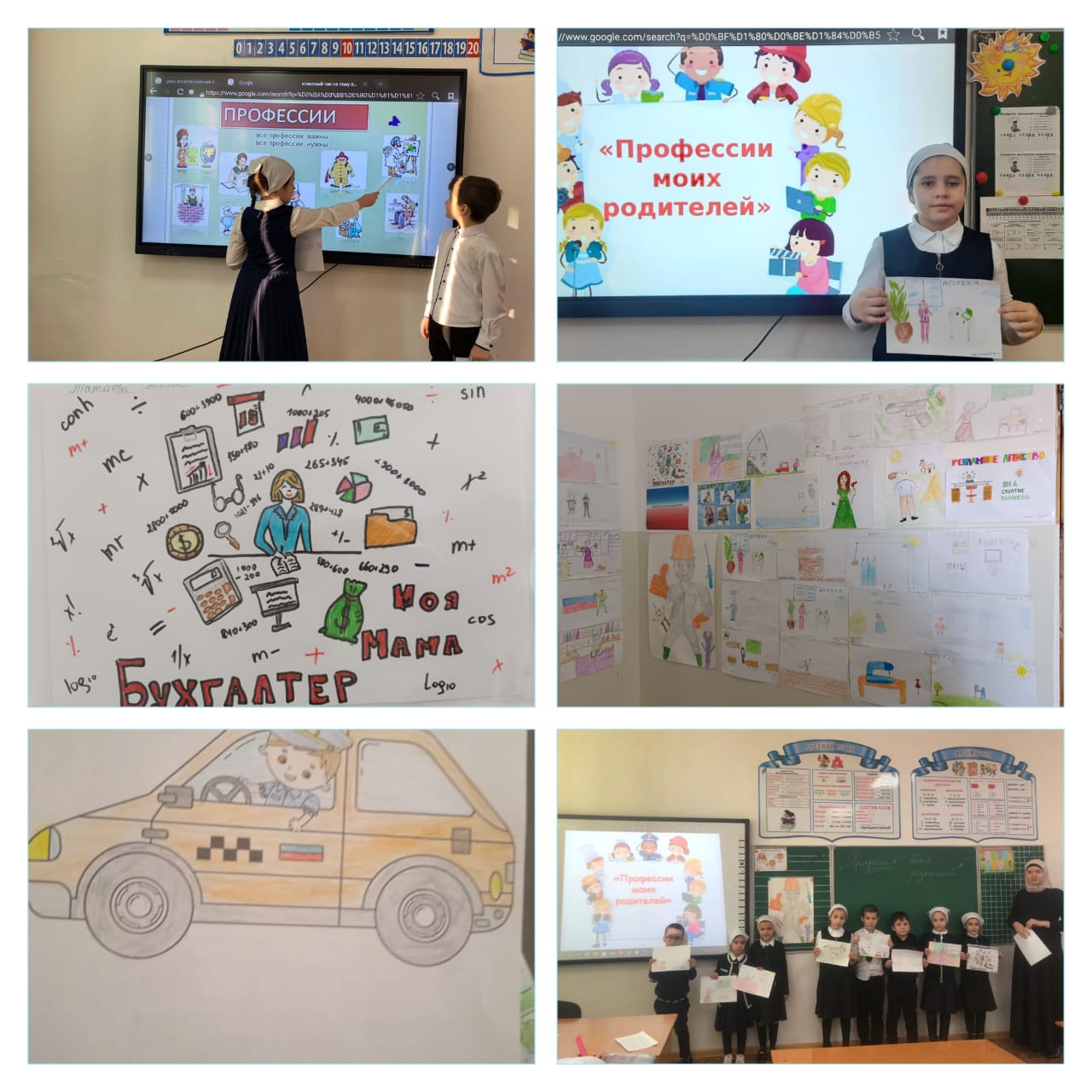 12.01.2023г. Проведена выставка рисунков среди учащихся 1-4 классов «Профессии моих родителей». Дети нарисовали своих пап и мам в самых разнообразных сферах профессиональной деятельности. Строитель, водитель, лаборант, военный, врач, воспитатель, повар, бухгалтер и другие профессии можно было увидеть на рисунках детей.