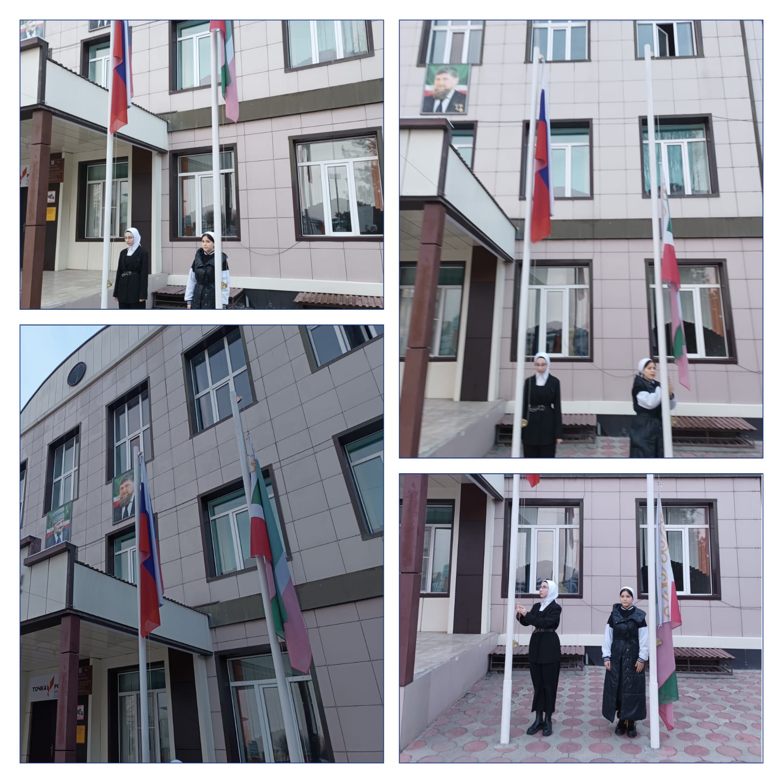 Учебная неделя началась с исполнения Государственного Гимна Российский Федерации и Гимна Чеченской Республики.