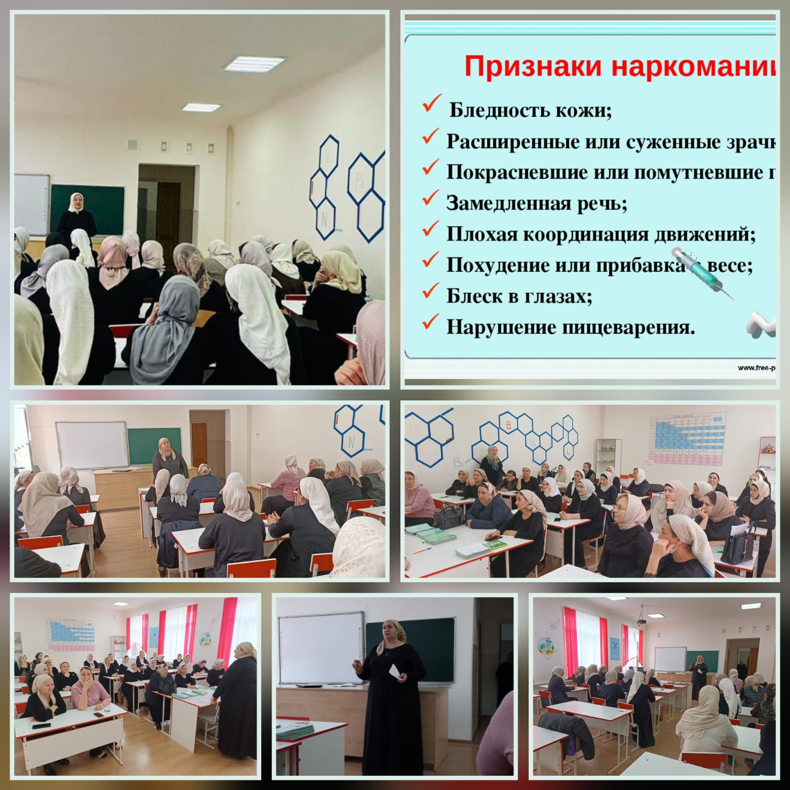 10.04.202310.04.2023г. проведено методическое совещание с классными руководителя 1-11 классов и учителями-предметниками с целью обучения навыкам определения первичных признаков наркотического поведения. Подготовила и провела мероприятие Бараева Я.З., заместитель директора по воспитательной работе. Очень важно для родителей, педагогов определить на самых ранних стадиях приобщение ребенка или подростка к наркотикам.Различают две основные группы признаков употребления наркотиков: поведенческие и физиологические.Поведенческие признаки:Нарастающая скрытность ребенка (возможно, без ухудшения отношений с родителями). Часто она сопровождается учащением количества и увеличением продолжительности «гуляний», когда ребенок уходит из дома в то время, которое раньше пребывал в семье или за уроками.Появление у ребёнка сонливости или, наоборот, бессонницы.Падение интереса к учебе или привычным увлечениям. Прогулы школьных занятий.Появление трудностей в сосредоточении на чем-то конкретном. В результате - неизбежное снижение успеваемости.Увеличение финансовых запросов и активный поиск путей их удовлетворения, выпрашивание денег во все возрастающих количествах (если начинают пропадать деньги из родительских кошельков или ценные вещи из дома – это очень тревожный признак).Появление новых сомнительных друзей, поведение старых приятелей становится подозрительным. Разговоры с ними ведутся шепотом, непонятными фразами или в уединении.Неопрятность во внешнем виде, склонность к прослушиванию специфической музыки.Беспричинная смена настроения, очень часто не соответствующая ситуации: раздражительность в спокойной ситуации, болезненная реакция на критику.Появление изворотливости, лживости, уход от ответов на прямые вопросы.Физиологические признаки:Бледность или покраснение кожи;Расширенные или суженые зрачки;Покрасневшие или мутные глаза;несвязная, замедленная или ускоренная речь;потеря аппетита, похудение, а иногда – чрезмерное употребление пищи;хронический кашель;плохая координация движений (пошатывание или спотыкание);резкие скачки артериального давления;расстройства желудочно-кишечного тракта.О наркотическом опьянении подростка могут свидетельствовать и его манеры поведения:Состояние наркотического опьянении напоминает алкогольное, но без характерного запаха алкоголя изо рта. Общим признаком этого опьянения является эйфория, т.е. приподнятое настроение, безмятежное блаженство в сочетании с замедлением или ускорением мышления. Нередко возникает сексуальное возбуждение. Однако такое настроение неустойчиво и может внезапно смениться недовольством.