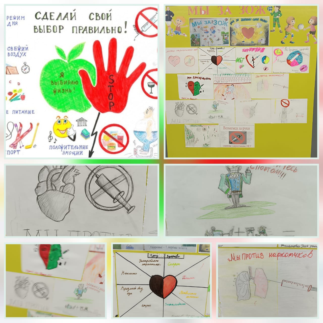 07.04.2023г. Проведена выставка рисунков на тему: "Мы за ЗОЖ". Подготовила и провела выставку Хатуева З.К., учитель ИЗО.