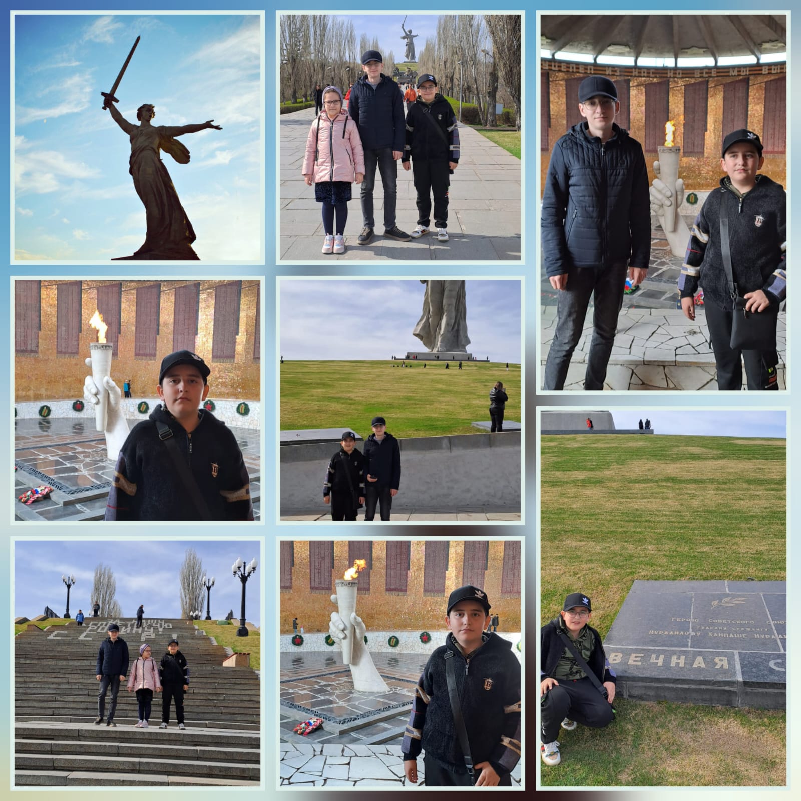 08.05.202308.05.2023г.нашей страны. Одна из них - Сталинградская битва, великая битва на Волге, подобной которой не знала история войн и история человечества. 8 мая семья Мусаевых, дети Диана, Турпал и Майрбек, вместе с бабушкой посетили историко-мемориальный комплекс «Родина – Мать зовет», который находится в городе герое Волгограде. Монумент "Родина-мать зовет" находится на самой вершине кургана. Начали наш подъем. Вверх ведет огромнейшая лестница, на которой отчетливо видна надпись "За нашу Советскую Родину! СССР!"Они возложили цветы на мемориальную плиту Героя Советского Союза Ханпаши Нурадилова, нашего земляка. Здесь, думая о прошлом и мечтая о будущем, люди вспоминают тех, кто погиб, защищая вечный огонь жизни (надпись на плите при входе на Мамаев курган). Дети подробно узнали о боях, проходивших здесь в 1942-1943 гг., и об истории создания величественного мемориала. Экскурсия вызвала живой отклик, способствовала развитию интереса к истории города-героя Волгограда и воспитанию патриотизма. Не дожидаясь возвращения домой, дети с восторгом делятся впечатлениями и фотами. Цель – показать детям настоящих героев, защитников Родины, формирование целостного представления о роли памятника-ансамбля «Героям Сталинградской битвы» на Мамаевом кургане в гражданско-патриотическом воспитании обучающихся.