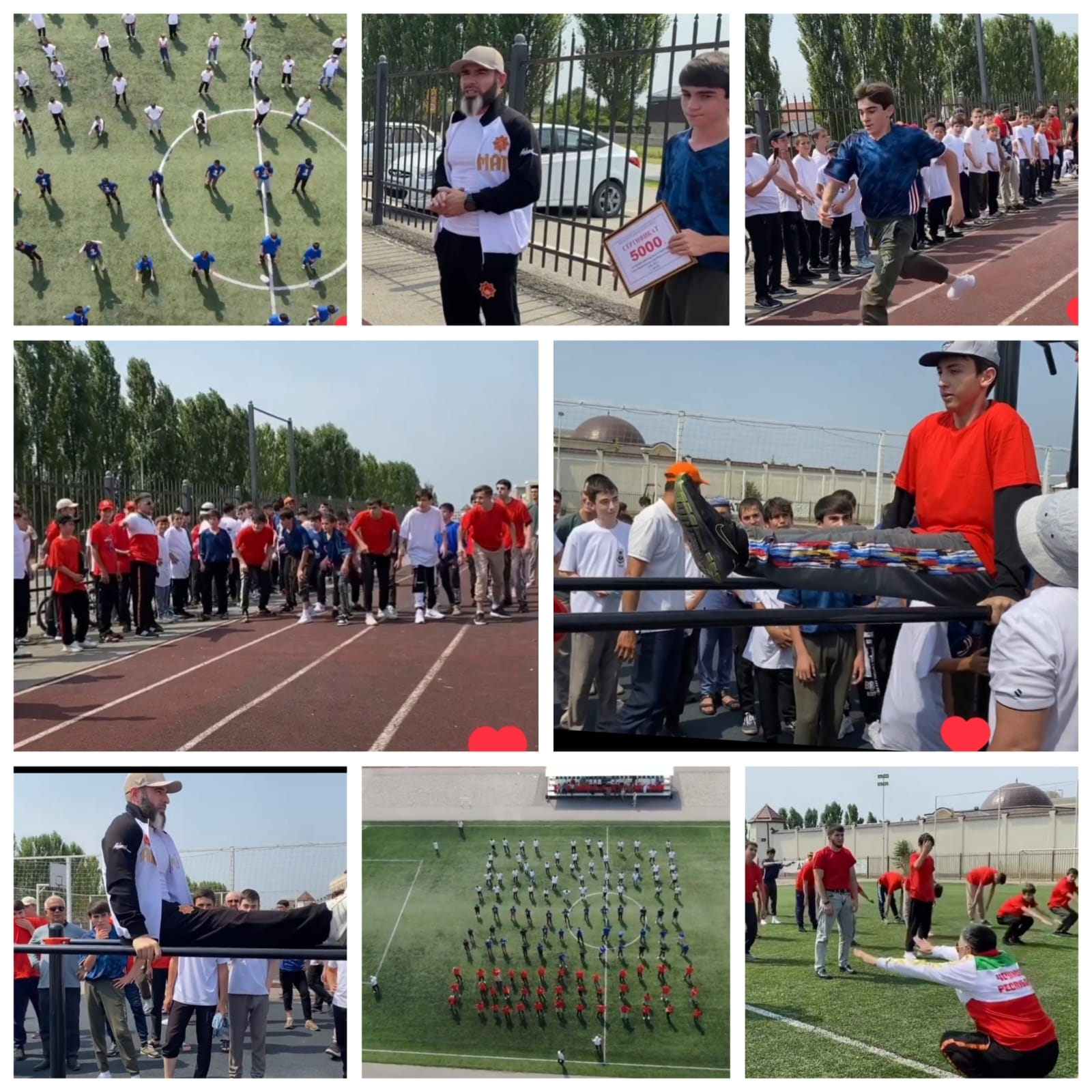 В акции приняли участие начальник Департамента образования, представители мэрии, учителя и около 150 обучающихся 5-11 классов общеобразовательных организаций г. Аргун. Все участники, одетые в белые, синие, красные футболки, вышли на спортивную площадку и под руководством опытных специалистов провели комплекс физкультурных упражнений.