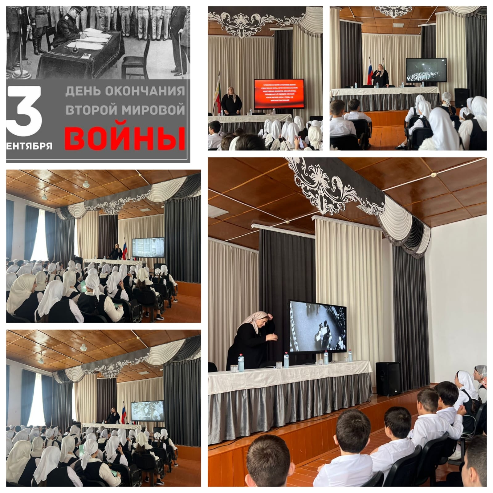 2 сентября обучающиеся 4-6 классов в актовом зале провели, посмотр документальный фильма "Япония против всего мира. Начало Второй мировой войны". Памятная дата России – 3 сентября 1945 года – День окончания Второй мировой войны. Во Вторую мировую войну, продолжавшуюся шесть лет с 1 сентября 1939 года по 2 сентября 1945 года, было втянуто 61 государство.