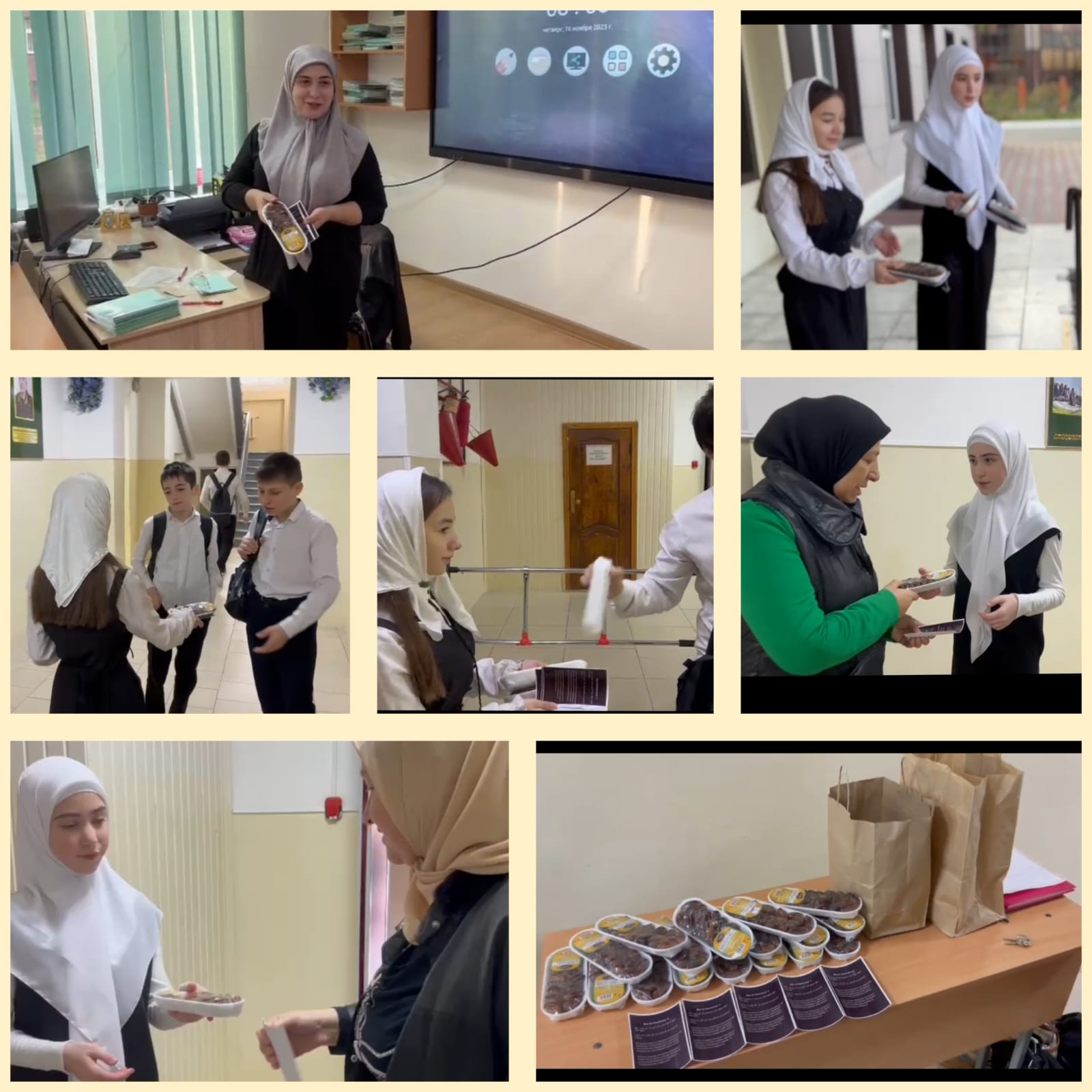 16.11.2023г. По воле Всевышнего Аллаха, сегодня в школе раздали садака и листовки с дуа за наших братьев и сестёр Палестины.