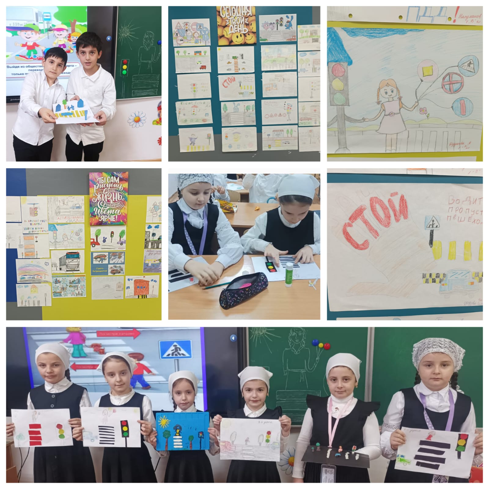 27.01.2024г. В рамках выполнения совместного плана с сотрудниками ПДН, ОУУП, ОУР ОМВД России по г. Аргун, в целях снижения уровня детского дорожно-транспортного травматизма, 27.01.2024г. в школе проведена выставка детских рисунков по ПДД «Дорога глазами детей». В выставке приняли участие обучающиеся 1-5 классов. Цель мероприятия: закрепить знания детей о правилах дорожного движения, видах транспортных средств, дорожных знаках, видах переходов, сигналах светофора; воспитывать чувство ответственности и осторожное поведение на улицах. Ребята проявили большую творческую активность, они не только нарисовали интересные рисунки, но проверили свои «Дорожные» знания. Дети изобразили свой взгляд на безопасность дорожного движения. Все работы индивидуальные, не похожие одна на другую, но объединенные одним общим смыслом: чтобы дорога была безопасной, надо не только знать, но и соблюдать правила дорожного движения.