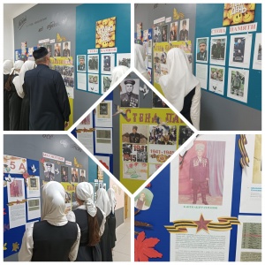 Ко Дню Победы в фойе школы оформлены стенды, на которых размещены портреты участников Великой Отечественной войны, героев, с которыми каждый год принимали участие в шествии «Бессмертный полк» ученики, родители педагоги и жители хутора. Всероссийская общественная акция «Стена памяти» — это возможность сказать «спасибо» всем отцам, дедам и прадедам, защитившим Родину, прошедшим войну на полях сражений и в тылу. Наша школа носит имя Ветерана Великой Отечественной войны Канти Абдурахманова.