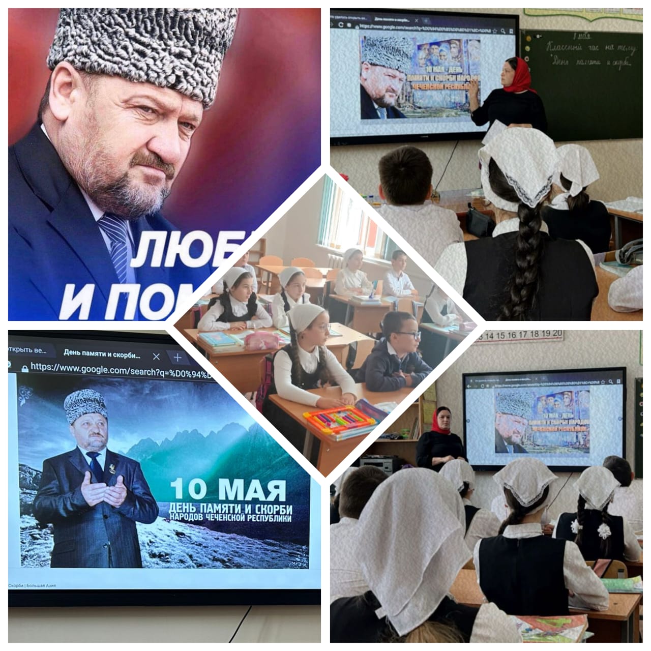 8.5.2024г. В рамках реализации программы по духовно-нравственному воспитанию подрастающего поколения в школе проведены тематические часы, беседы на тему «Мы помним», приуроченный к Дню Памяти и Скорби народов Чеченской Республики.