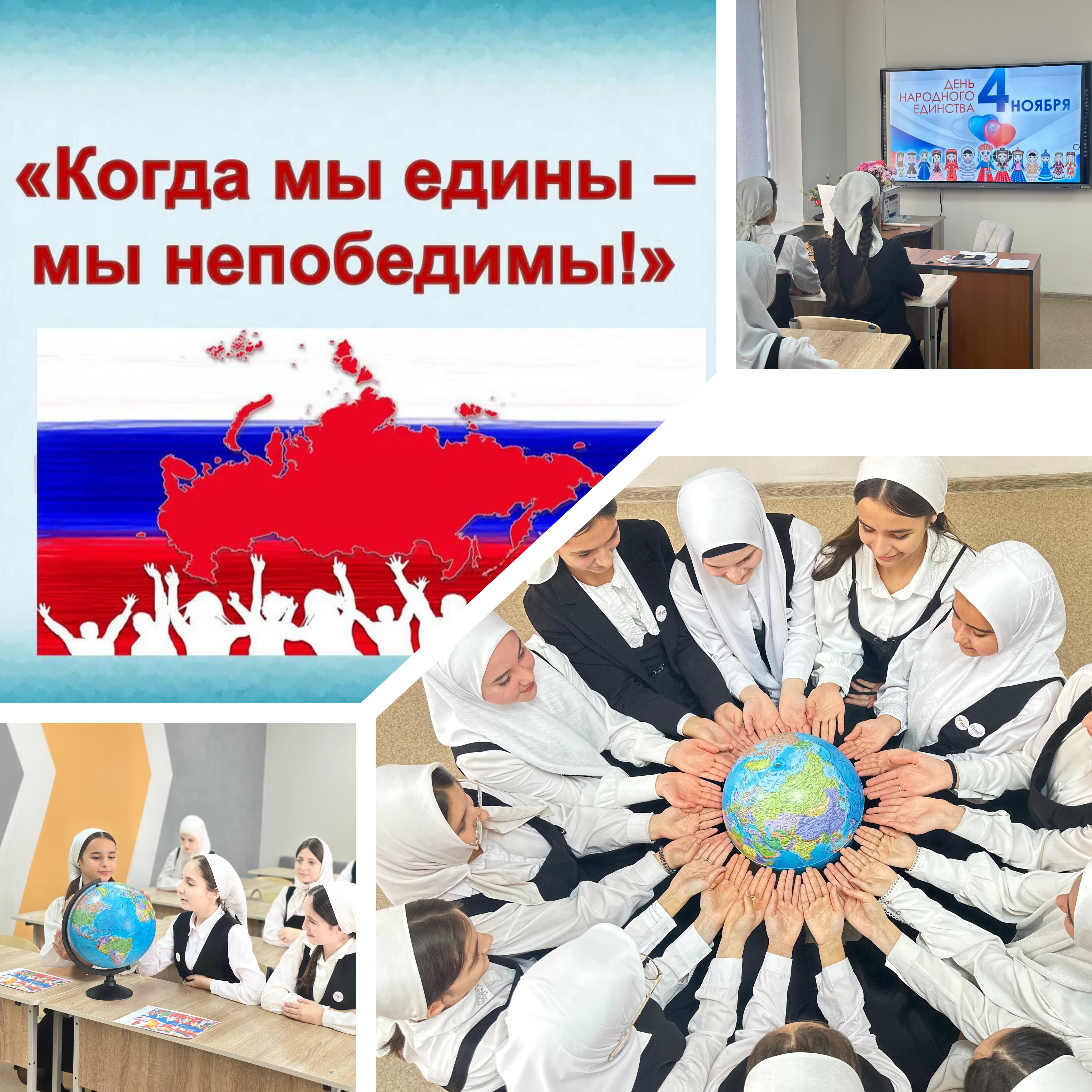 1.11.2024г. Абубакарова Э.Ш., учитель истории, в 8 «Д» классе провела открытый урок по истории на тему: «День народного единства». Цель: развивать чувство гражданственности и патриотизма, любовь к родине, интерес к истории Российского государства; воспитывать чувство гордости и уважения к защитникам государства; формировать ответственность за судьбу Родины.