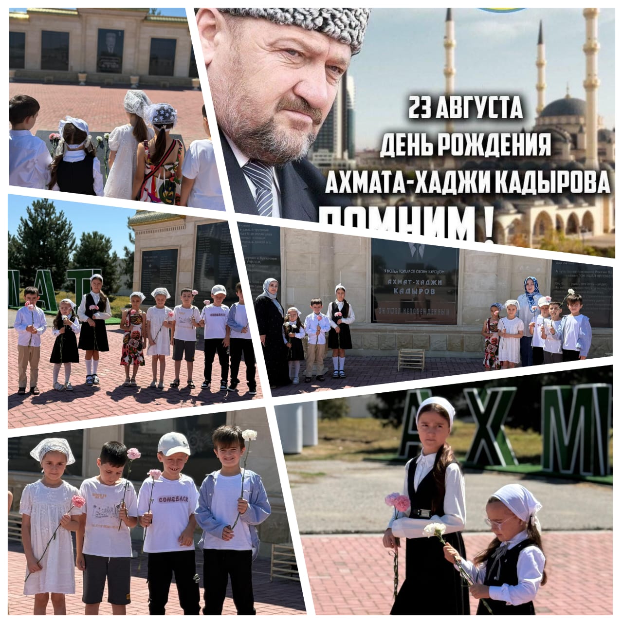 22.08.202522.8.2025г. В этом году 23 августа чеченский народ отмечает годовщину со дня рождения своего национального героя, первого Президента ЧР Ахмата-Хаджи Кадырова. Согласно плану мероприятий, посвященных Дню рождения первого Президента ЧР, Героя России А.А-Х. Кадырова, с целью духовно-нравственного воспитания подрастающего поколения, в школе проведены следующие мероприятия: фасад здания и фойе были оформлены баннерами. 22.8.2025г. учителя начальных классов Габатаева И.В. и Межиева П.А. с обучающимися 3а и 4а класса посетили мемориал А-Х.Кадырова и возложили цветы.