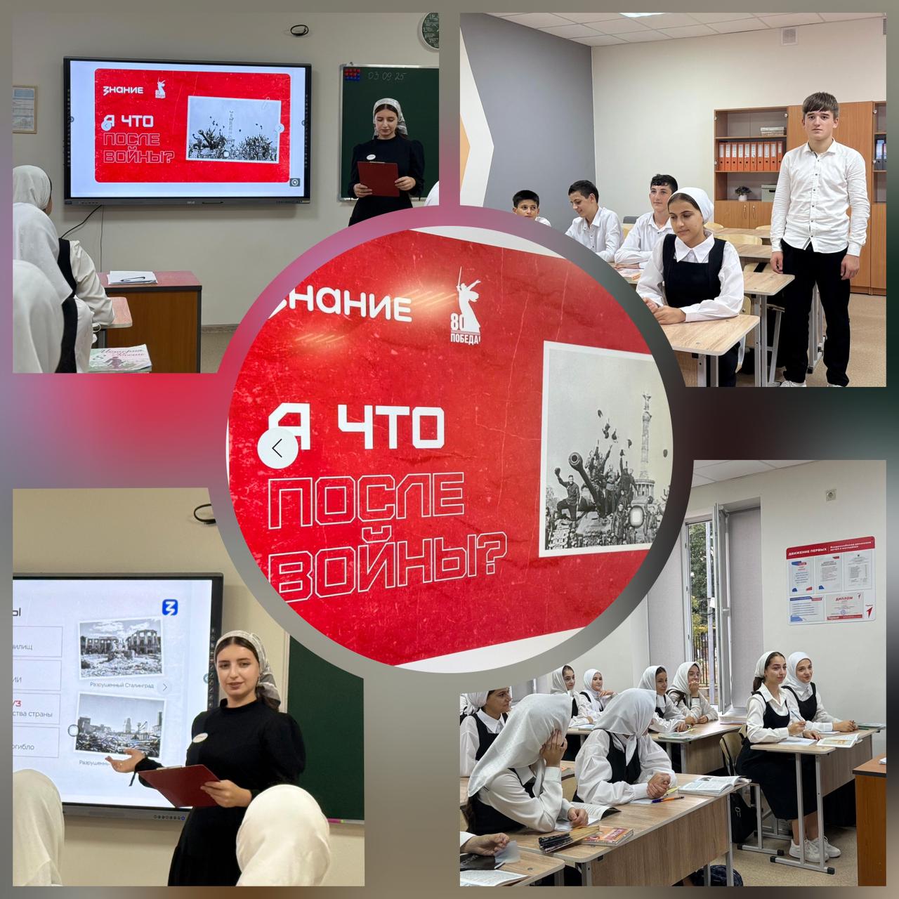 03.09.20253 сентября в МБОУ «СОШ №2» г. Аргуна учитель истории Исаева Х. Р., провела урок, посвященный Дню Победы над милитаристской Японией и окончанию Второй мировой войны. Урок начался с минуты молчания в память о погибших. Исаева А.Р. рассказала об исторических предпосылках, этапах и сражениях Второй мировой войны, акцентируя внимание на вкладе советского народа в победу. Использовались архивные фото, видео и документальные фильмы. Ученики активно участвовали в обсуждении, делились мыслями о важности сохранения мира и недопущения повторения трагедий. В заключение учитель подчеркнула значимость Дня Победы как дня скорби, памяти и надежды. Урок завершился исполнением песни «День Победы»