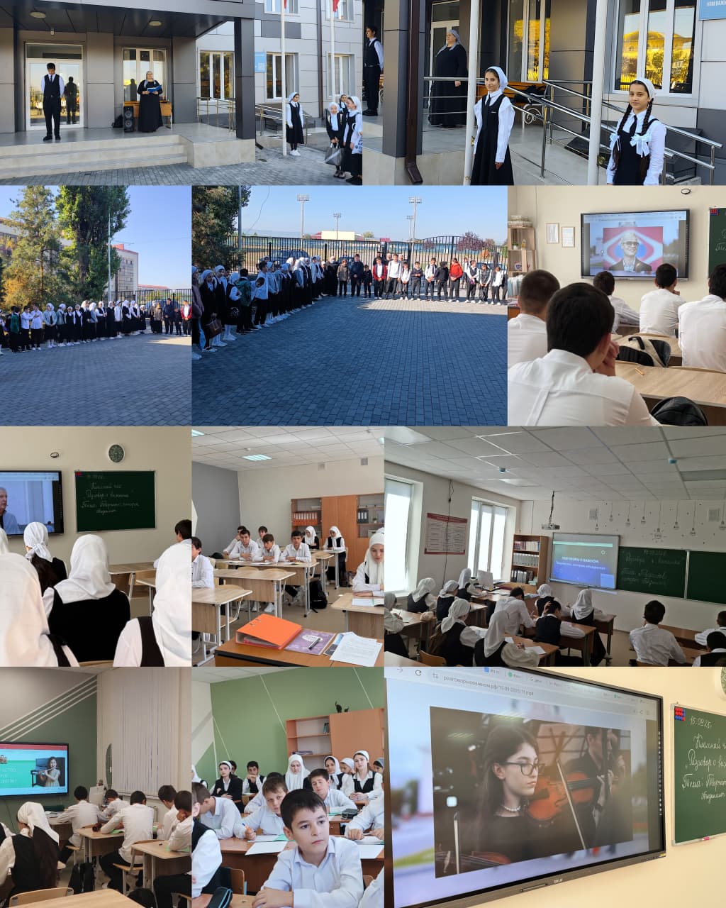 15.09.2025Сегодня традиционно начали учебный день с торжественного поднятия флага Российской Федерации и Чеченской Республики. С приветственным словом к собравшимся обратилась заместитель директора по УВР Хадисова М А. В своём выступлении она отметила важность воспитания чувства патриотизма и ответственности у молодого поколения и пожелала обучающимся успешной учёбы и активной жизненной позиции. После этого во всех классах прошли занятия в рамках проекта «Разговоры о важном». Темой встречи стало «Творчество, которое объединяет». Мы говорили о том, что творчество — неотъемлемая часть жизни каждого человека. Оно помогает выражать эмоции, развивает воображение, объединяет людей и воспитывает духовные ценности. Ребята обсудили роль искусства в жизни человека, вспомнили великих представителей русской и чеченской культуры. Отдельное внимание уделили современной музыке и международному конкурсу «Интервидение», который вновь объединяет народы через искусство. Творчество — это не только увлечение, но и мост между людьми, поколениями и целыми культурами.