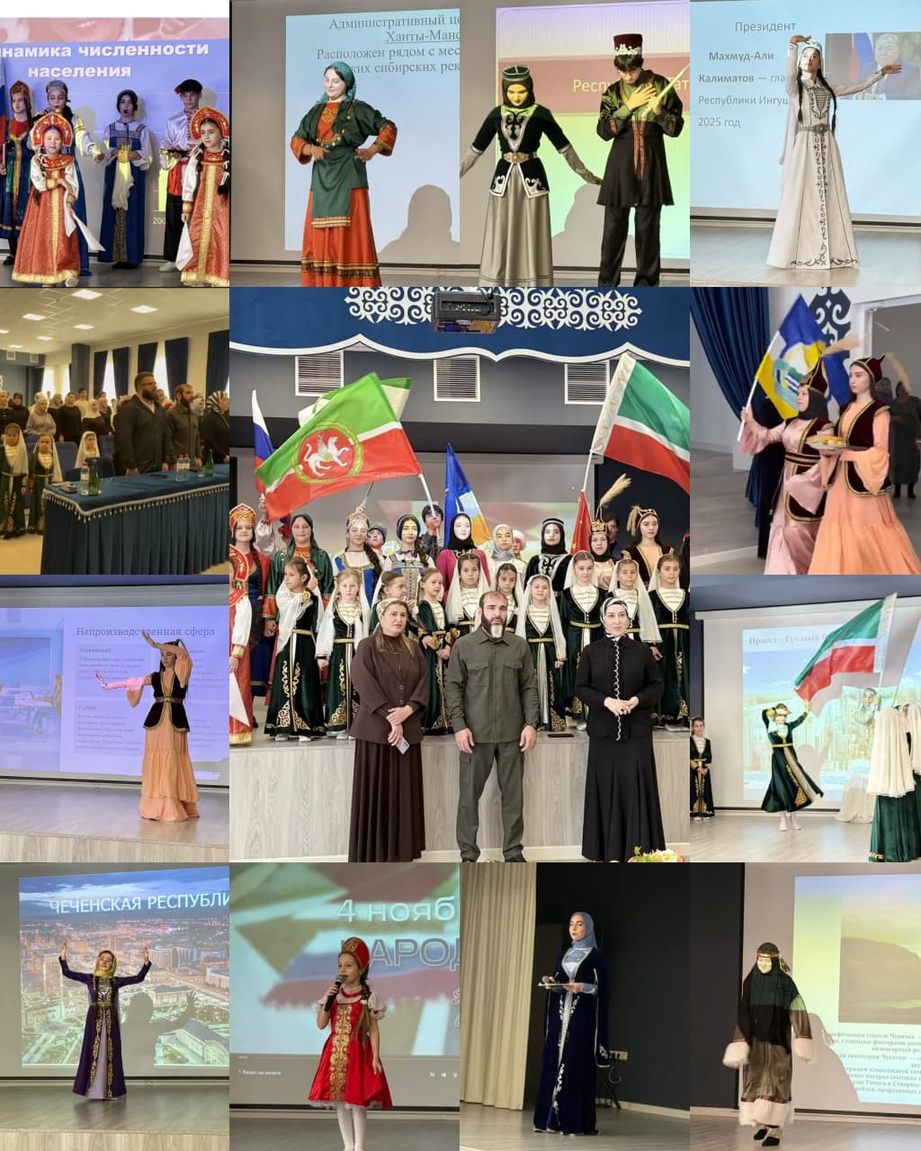 01.11.20251.11.2025г. Сегодня в школе проведен фестиваль национальных культур «В дружбе народов единство России», посвященный к Дню народного единства. В школе царила праздничная атмосфера с разноцветьем красок и жанров, песен и музыки народов, проживающих в нашей необъятной стране и содружестве. Яркие костюмы, национальные песни и искромётные танцы вызывали бурю положительных эмоций у собравшихся на фестиваль гостей, педагогов и учеников. Участники фестиваля, среди которых самые маленькие - первоклассники и обучающиеся 2 - 10 классов представили национальности: татарскую, удмуртскую, русскую, карачаево - черкескую, хантов, чеченскую, удмуртов, чукчев, китайскую культуру. Ребята рассказывали об их традициях и обычаях, народных праздниках и творчестве. А какие вкусные национальные блюда красовались на столах: татарский чак-чак, удмуртский кыстыбей, русские блины, чеченские жижиг-галнаш, суши и многие другие яства были представлены в соответствии с национальными традициями их приготовления. На празднике присутствовали почётные гости: начальник Департамента г. Аргун Усманов С. Р. Всех собравшихся приветствовала директор школы Элиза Рамзановна. На празднике не награждали победителей, не отмечали призёров, а чествовали каждый школьный творческий коллектив, отметив, что большой вклад в его проведение внесла заместитель директора по ВР, совместно с классные руководителями. Фестиваль получился очень тёплым, добрым, его участники, гости, зрители отметили необходимость проведения таких мероприятий, ведь Россия - многонациональное государство, в котором нет места межнациональным конфликтам. Россия – государство, в котором проживают представители более ста народов. Наша школа – это общий дом для детей разных национальностей. Каждому из нас важно знать и уважать обычаи и традиции народов, живущих рядом. На фестивале представлена лишь малая часть народов, проживающих на территории России. И все они живут одной большой семьей в мире и согласии. Давайте возьмёмся за руки - это и будет символом единства и дружбы народов, могущества России.