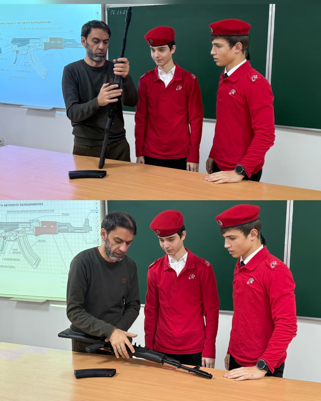18.11.2025Сегодня в юнармейском отряде царила атмосфера сосредоточенности и увлечённости: юные патриоты с энтузиазмом постигали азы обращения с автоматом. Под бдительным руководством советника директора Абубакаровой Э.Ш., и заместителя директора по ОБЗР Солтаева Х.Г., юнармейцы оттачивали навыки сборки и разборки, демонстрируя не только глубокие теоретические знания, но и уверенность, отточенность каждого движения. Эти занятия – не просто тренировка, это настоящая кузница дисциплины и мужества, где закаляются будущие защитники Отечества, готовые в любой момент встать на стражу Родины.