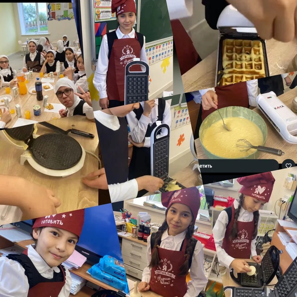 На уроках технологии обучающиеся 4 класса, под руководством учителя Габатаевой И.В., учились печь блины.